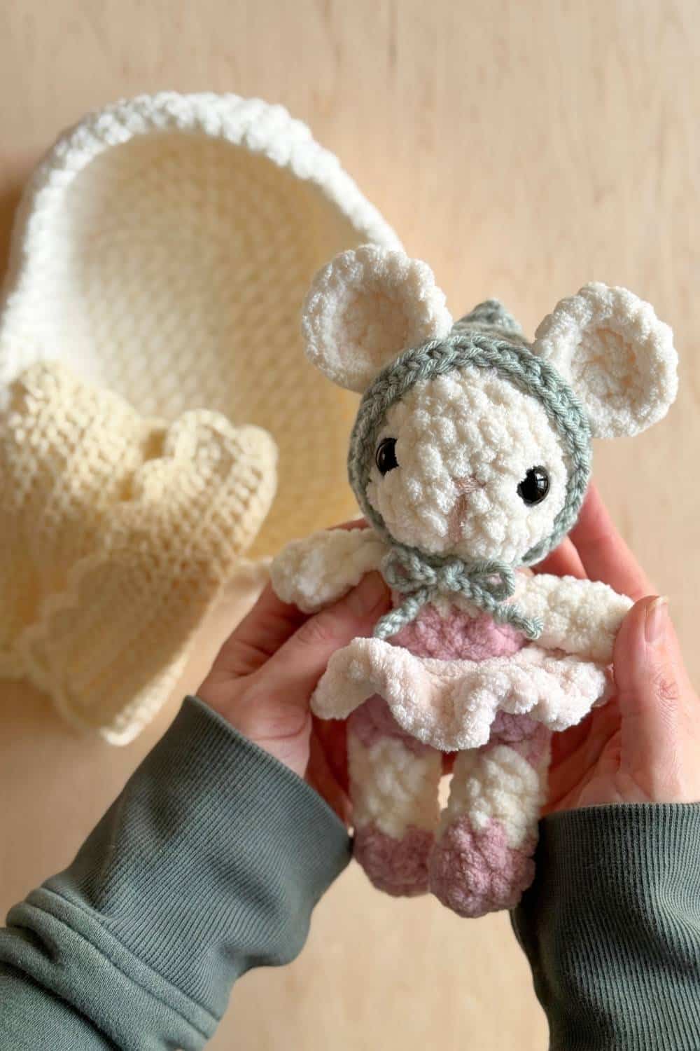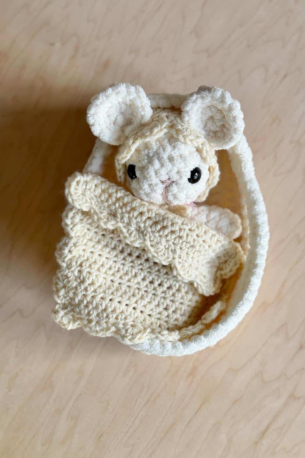 Pattern includes COMPLETE instruction for the Baby Brie Mouse with Pixie Hat pattern, as well as a separate pattern for a bassinet, blanket and bonnet. This is a great pattern for gifting and perfect for beginner-intermediate crocheters!