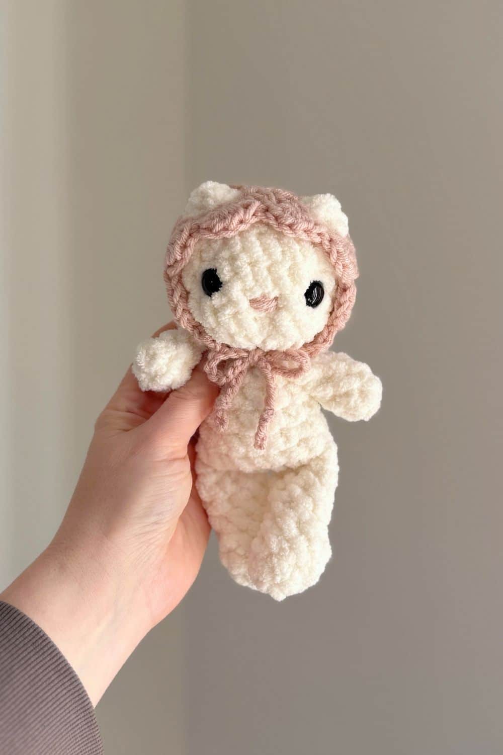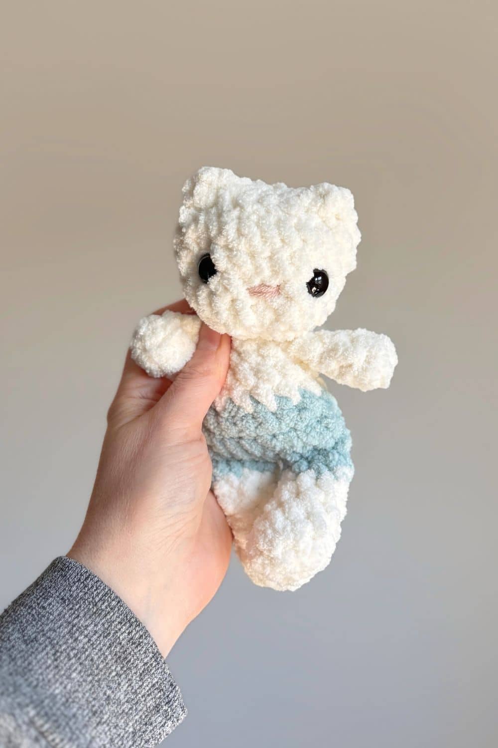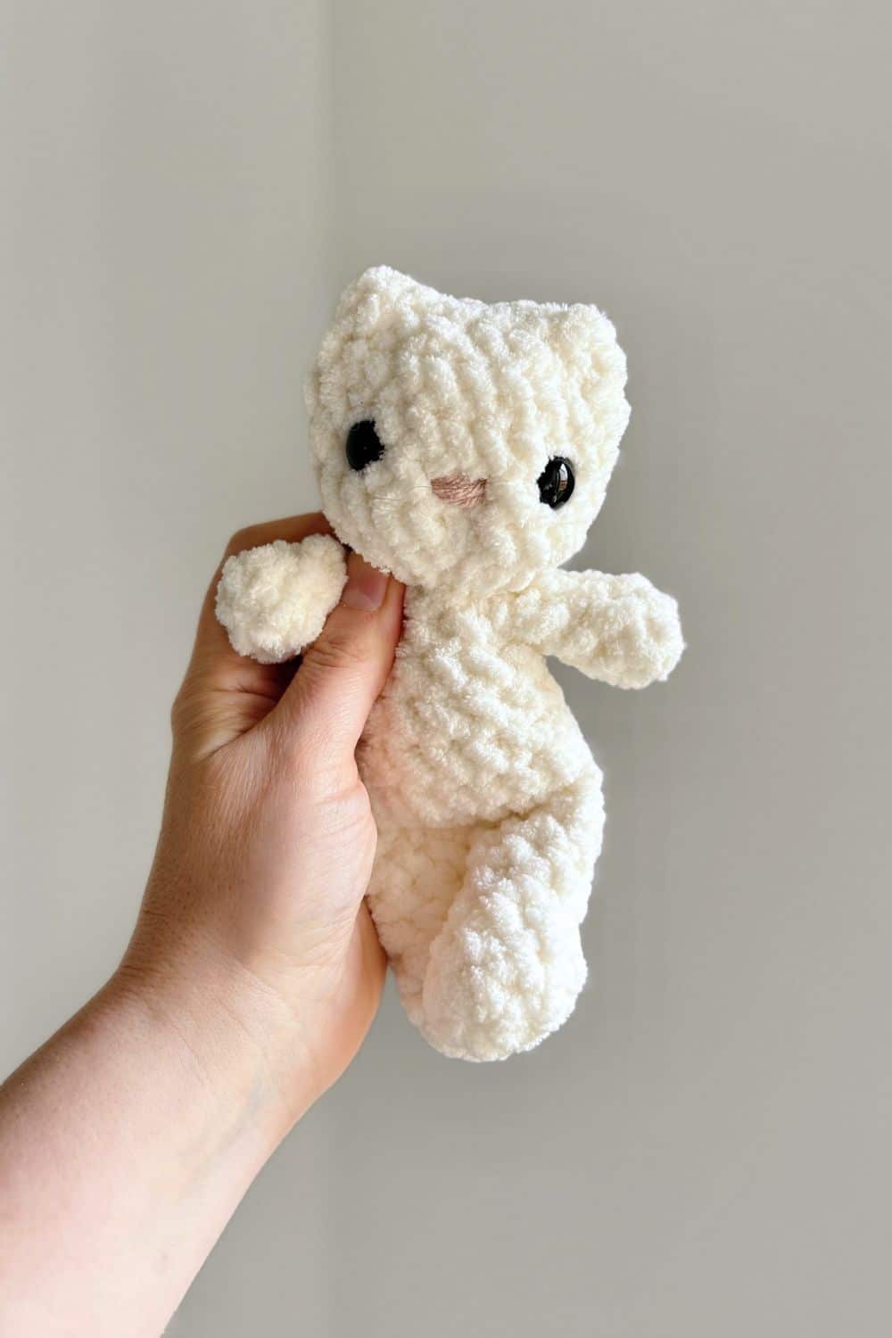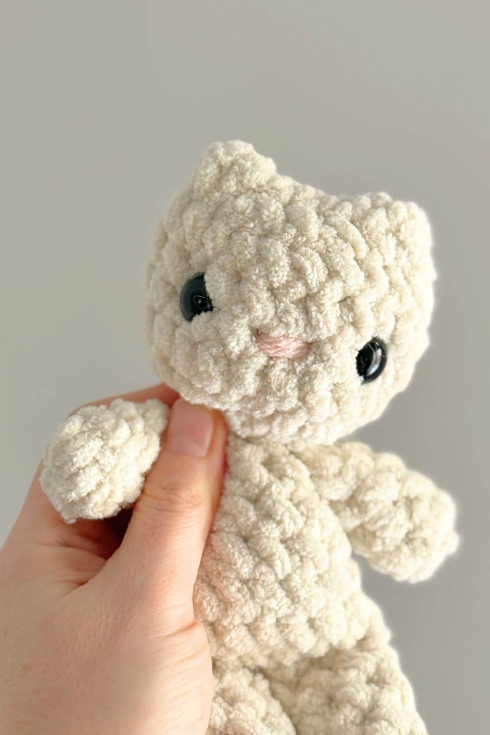 This BABY kitty crochet pattern is perfect for little hands and quick market makes! This pattern is made using plush blanket yarn, creating a soft and huggable finished toy.
