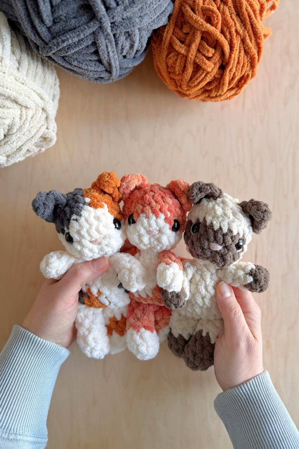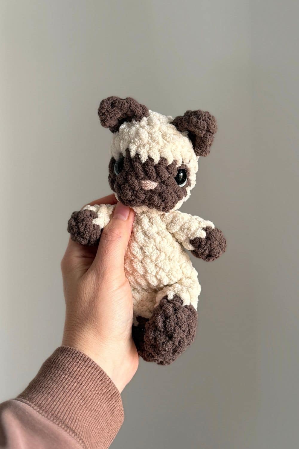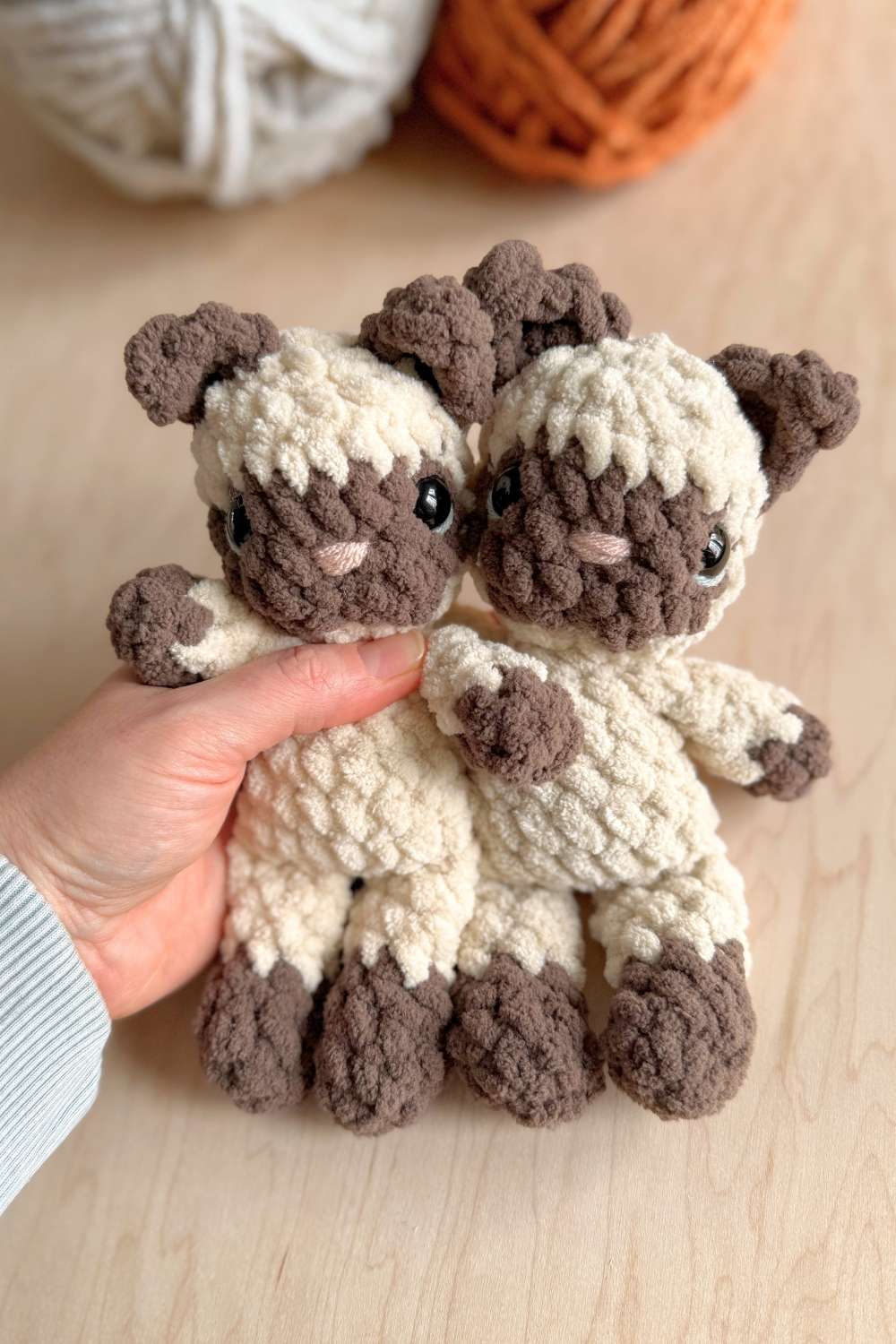 This adorable kitten crochet pattern is perfect for little hands and quick market makes! This pattern is made using plush blanket yarn, creating a soft and huggable finished toy.