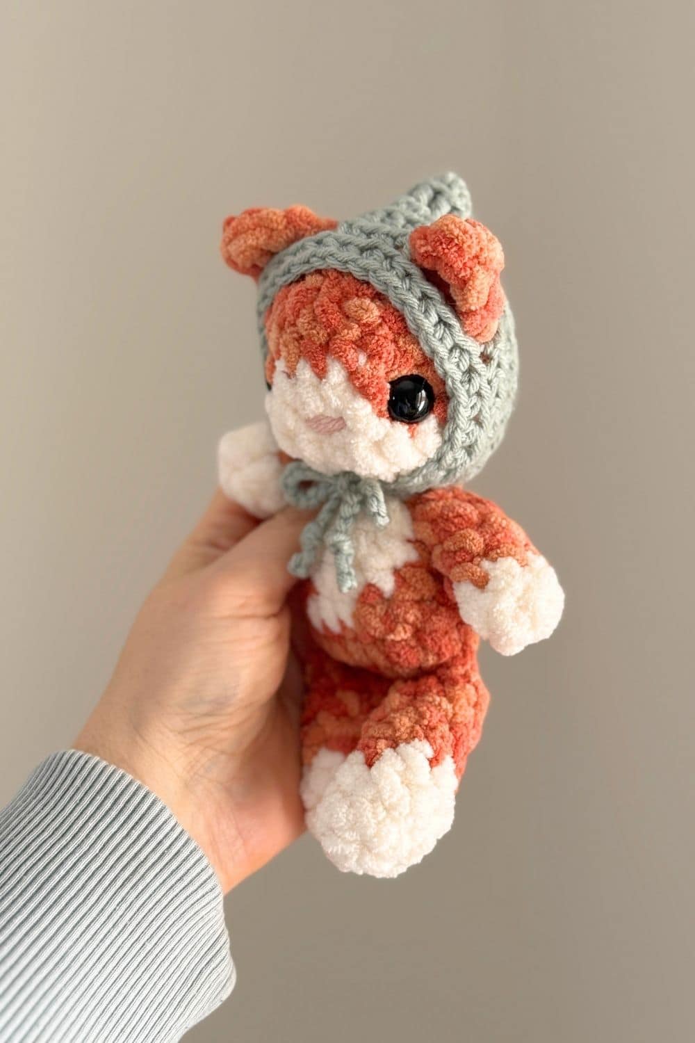 This adorable BABY cat crochet pattern is perfect for little hands and quick market makes! This pattern is made using plush blanket yarn, creating a soft and huggable finished toy.